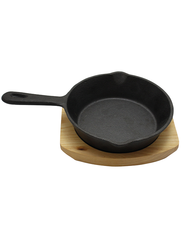 Μαντεμένιο σαγανακι τηγάνι με χερούλι και με ξύλινη βάση. Για επαγγελματική ή οικιακή χρήση. Μπορείτε να φτιάξετε νόστιμες ποικιλίες για να εντυπωσιάσετε τους φίλους ή τους πελάτες σας. Φτιάξτε τις δημιουργίες σας και σερβίρετε απ’ ευθείας στο σκεύος.