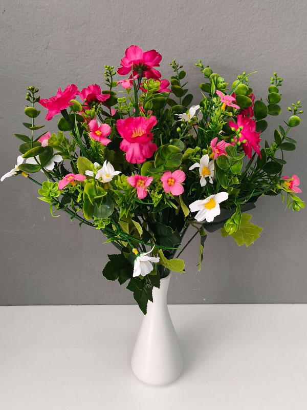 Στο kati-oikisimo θα βρείτε μεγάλη ποικιλία από λουλούδια διακοσμητικά εξαιρετικής ποιότητας που μοιάζουν σαν αληθινά. Ένα από αυτά είναι και η σύνθεση από αγριολούλουδα σε υπέροχα χρώματα και σε 3 διαφορετικές αποχρώσεις. Μπουκέτο για εξωτερική ή εσωτερική διακόσμηση που πλένετε εύκολα. Στολίστε το σπίτι τις γλάστρες σας ακόμη και τα κοιμητήρια. Μονή της ή συνδυάζοντας τη με ένα διαφορετικό μπουκέτο ή με ένα ίδιο μπουκέτο διαφορετικού χρώματος δίνει ένα υπέροχο αποτέλεσμα. Μην διστάσετε να μας τηλεφωνήσετε για να σας βοηθήσουμε στην επιλογή διαφόρων συνθέσεων και να σας προτείνουμε τρόπους διακόσμησης.