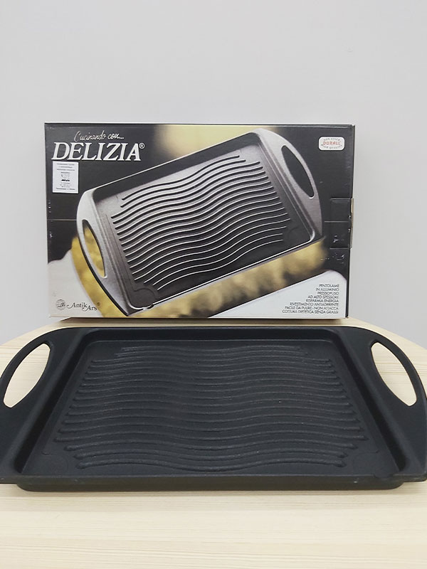 Για τους λάτρεις του υγιεινού σπιτικού φαγητού. Το Κάτι-Οικήσημο σας παρουσιάζει ένα καταπληκτικό μαγειρικό σκεύος, μαντεμένια πλάκα ψησίματος ραβδωτή. Ένα καταπληκτικό Ιταλικό προϊόν ιδανικό για τέλειο ψήσιμο χωρίς λάδι, δεν κολλάει και δεν χαράζει. Τοποθετείστε το σκεύος στο μάτι της κουζίνας σας (Για όλους τούς τύπους κουζίνας) αλλά και στον φούρνο.